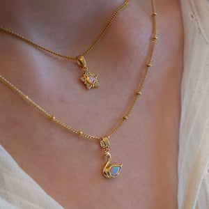 The necklace is made of gold coloured stainless steel